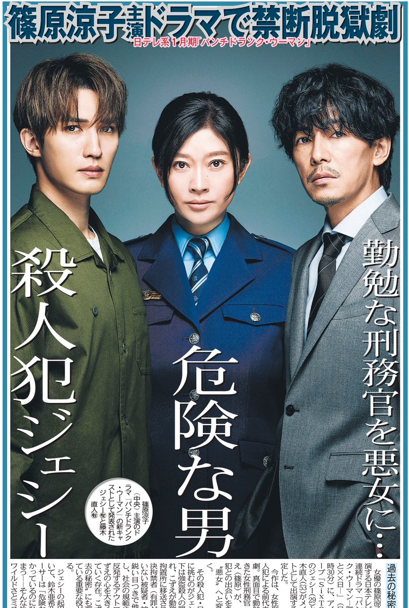 | 殺人犯SixTONES・ジェシーの禁断愛 刑務官役・篠原涼子と「2人で脱獄」日テレ1月期ドラマ出演決定 …“悪女”へと変貌していく。ジェシーは強盗殺人の罪で起訴され、こずえが勤務する氷川拘置所に移送されてきた未決拘禁者・日下怜治を演じ、藤木は怜治の事件を担… (出典:デイリースポーツ) |